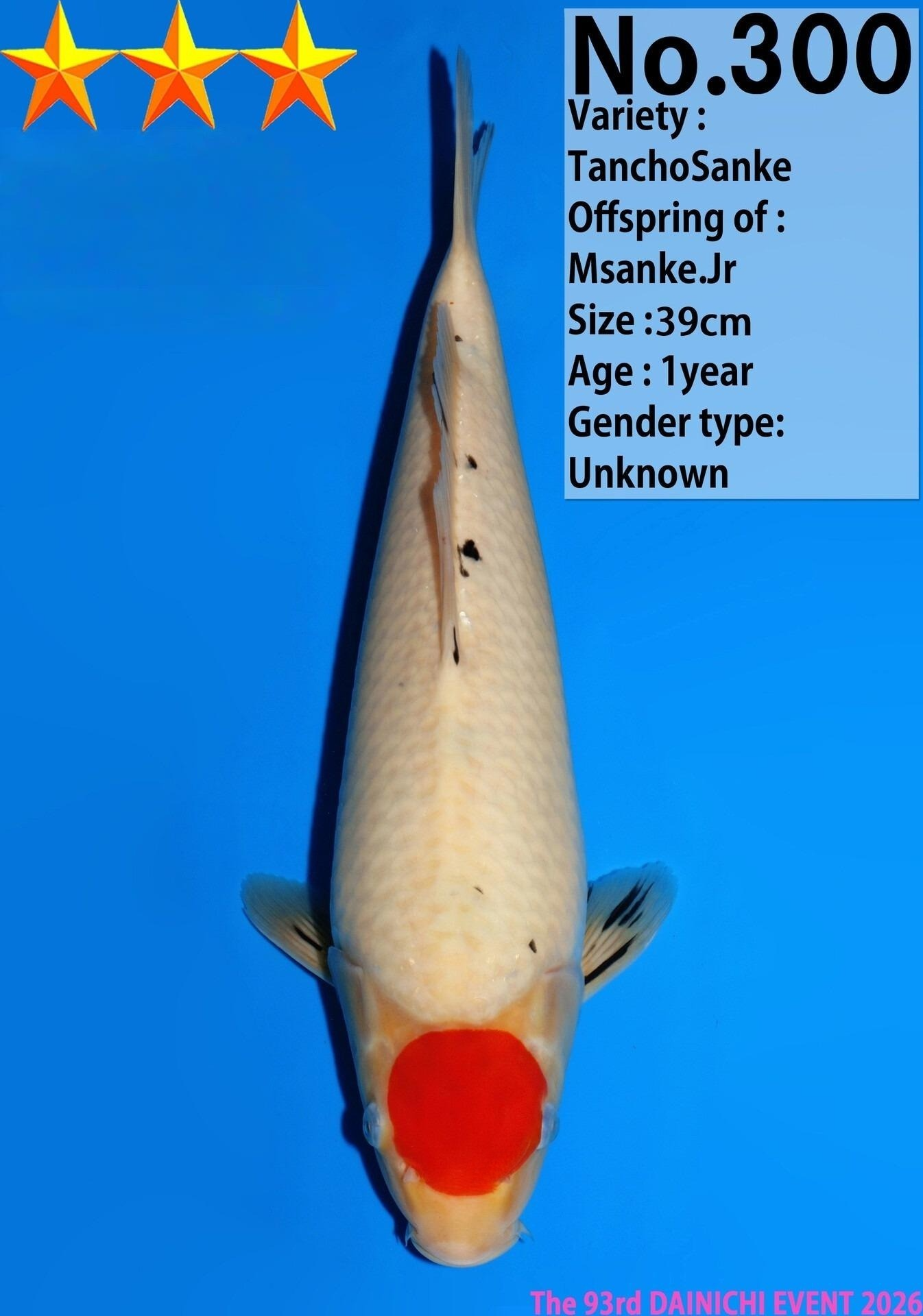 Un très bon tancho sanke Dainichi 300_39cm_Msanke.Jr, un koi avec tout le sumi à sortir .