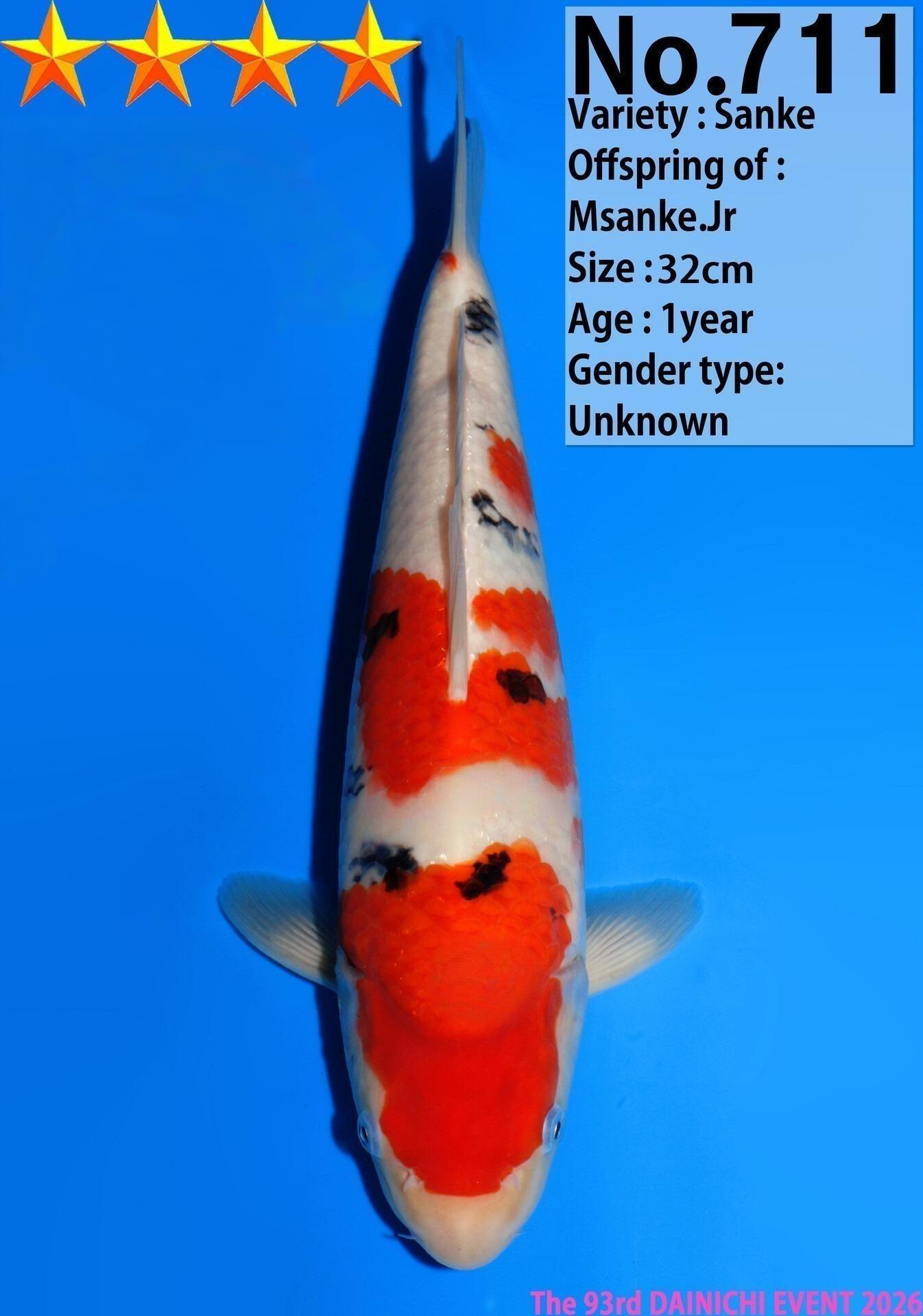 Une magnifique Dainichi sanke  711_32cm lignée Msanke.Jr. Un sanke avec un body vraiment remarquablement constitué