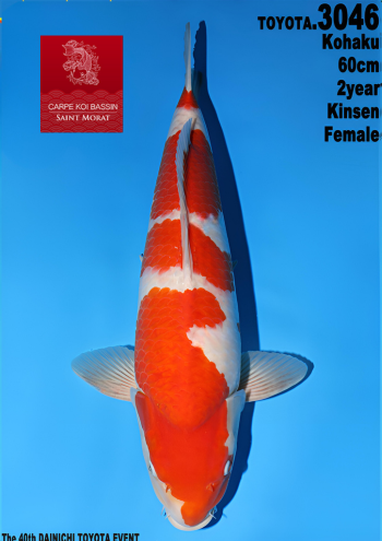 Un magnifique Dainichi Toyota nisai kohaku 2 de 60 cm et femelle…Un koi avec un vrai potentiel de croissance.