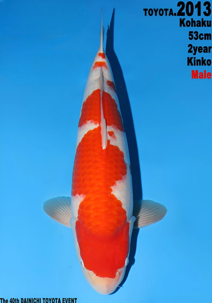 Un Dainichi Toyota nisai kohaku Mâle 1 de 53 cm. Un mâle certes mais avec un très beau body et un pattern bien aéré.