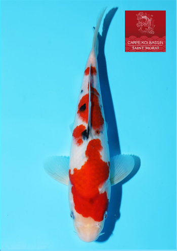 Un Kibi nishikigoi tosai sanke 90 de 25 cm, un très joli sanke pour celui qui sait entrevoir l’évolution, très joli body.