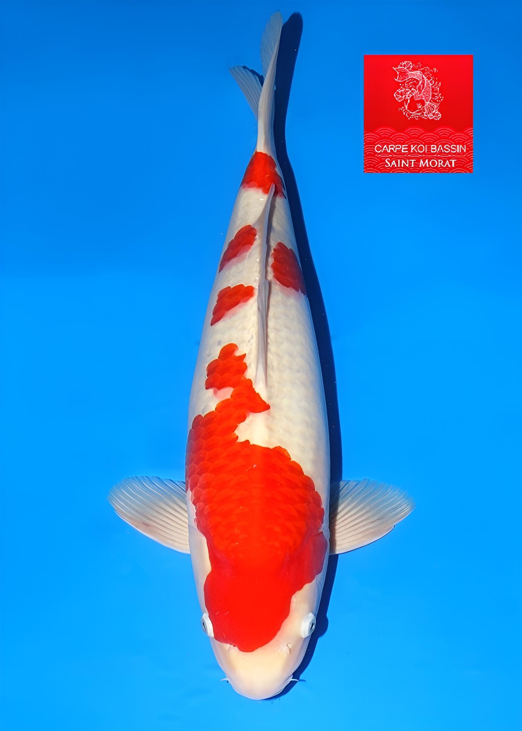 Un très bon Nisai kohaku femelle Maruhide 51 cm doté d’un excellent body . Shiroji très propre et excellent fukurin.