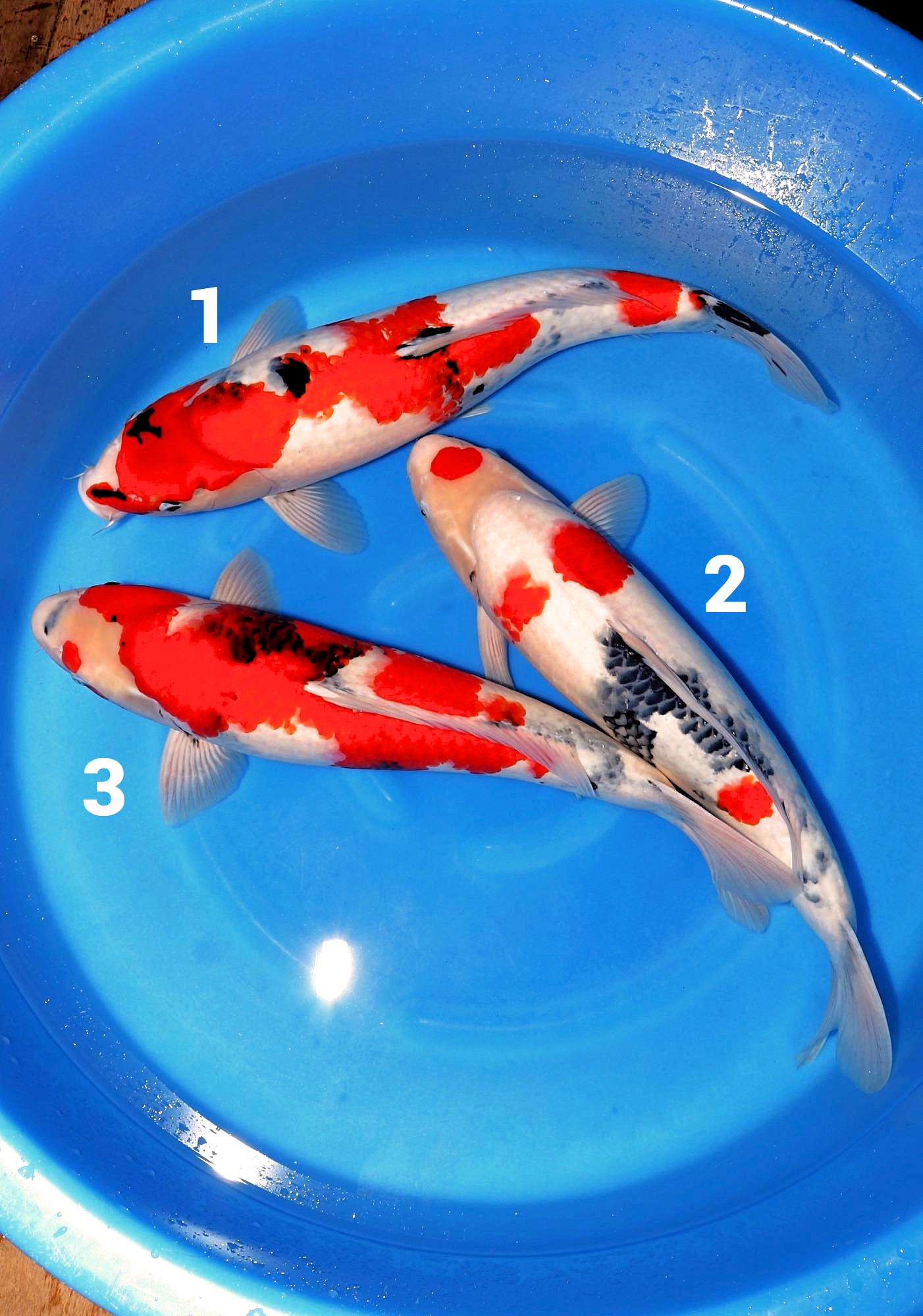 Un beau trio de Showa nisai femelle Ooya de +/- 55 cm à un prix vraiment doux.